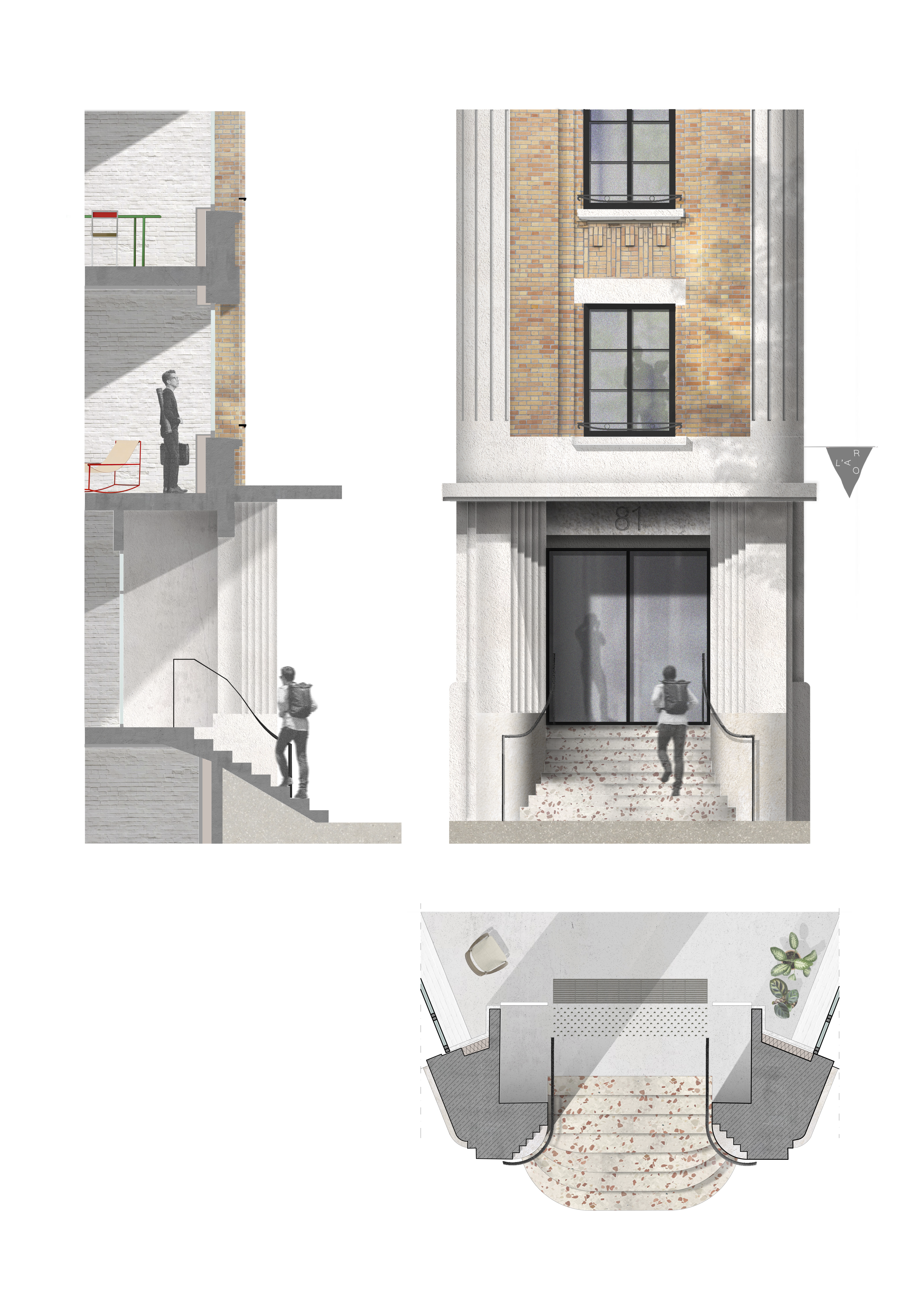 Le projet se situe au cœur du XIème arrondissement de Paris, à l’angle de l'avenue de la République, de la rue des Bluets, et de la Cité Bertrand. Initialement construit à destination de la clinique de Bluets, le bâtiment s’est transformé à plusieurs reprises, laissant apparaître une construction complexe composée de différentes couches successives. Pensé pour muter au gré de son cycle de vie, il accueillera un établissement d’enseignement supérieur.
