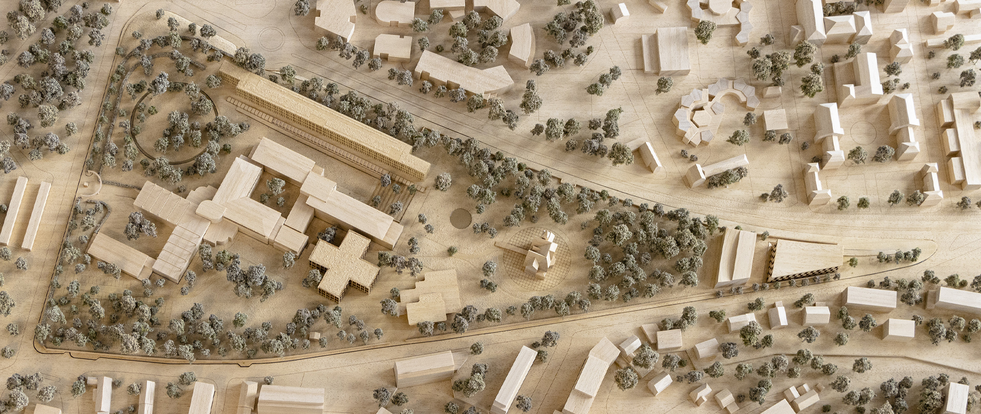 Le site profite d’une localisation privilégiée, proche de la forêt domaniale de Saint-Germain-en-Laye, d’infrastructures ferroviaires et routières, du centre-ville et de la nouvelle ligne de tramway T13. Il permet le dialogue entre le tissu pavillonnaire, une végétation riche et un patrimoine paysager et architectural remarquable. Il nous a paru primordial de respecter l’identité du parc tout en favorisant des interactions entre les différents « bâtiments-objets » présents sur le site, dont le château Saint-Léger (1886) réhabilité par Dominique Perrault en 1991 et le bâtiment coconçu par Jean Prouvé et René Coulon en 1952. En effet, l’idée du parc devient encore plus manifeste avec les aménagements paysagers. La composition végétale réintroduit l’image romantique tandis que des lieux d’échanges se façonnent sous différentes formes d’espaces extérieurs.
