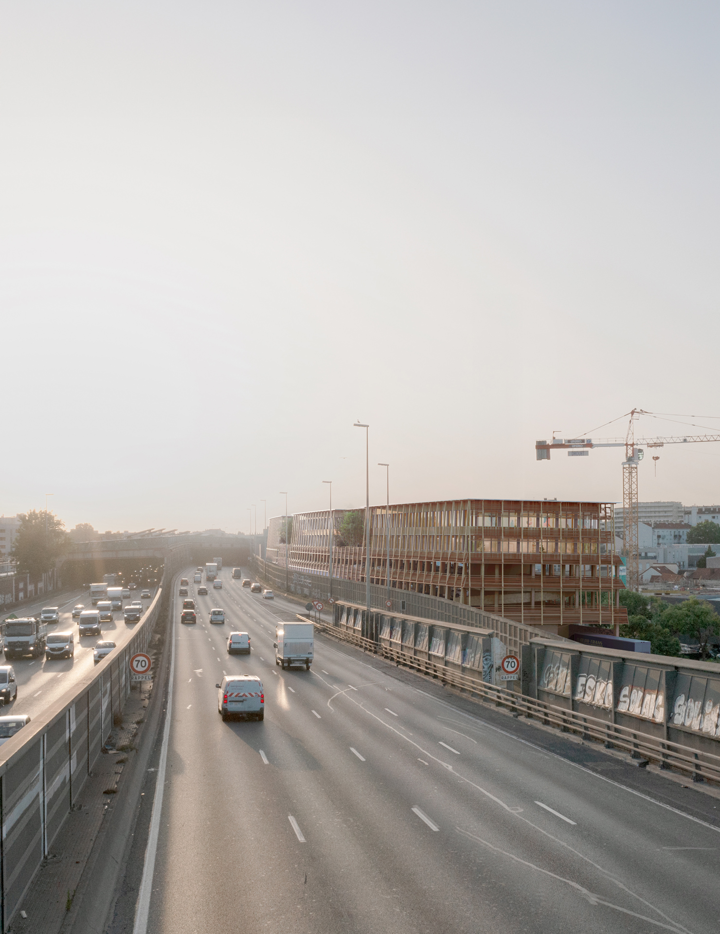 Bureaux et laboratoires - Villejuif Le projet se positionne face à l’autoroute, une fracture entre le tissu urbain pavillonnaire et le tissu d’habitat collectif.